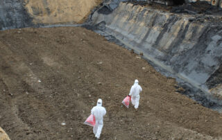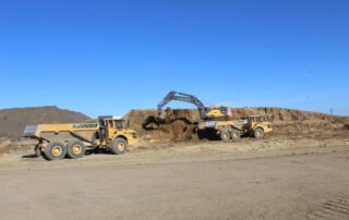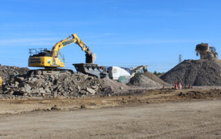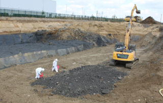 Twenty thousand cubic metres of contaminated material was excavated and processed. The soils were visually inspected at the excavation face and hauled to the processing area. Within the processing area NNLW (notifiable non-licensed work) trained asbestos operatives picked the asbestos initially operatives from stockpile then from within the Asbestos Picking station.