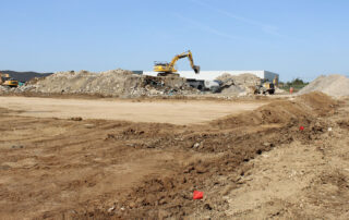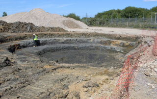 - Excavation and sorting of over a 100,000 cubic metres of soils which was tested to meet 1A/2A specification for re use in the earthworks profiles; the breakout and excavation of 28,000 cubic metres of hardstanding, crushed to meet the 6N specification for the construction of a 55,000m2 piling mat/working platform and the 6F2 specification for use in the construction of the roads.