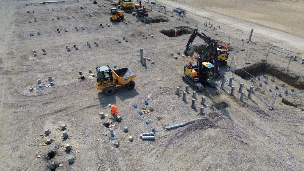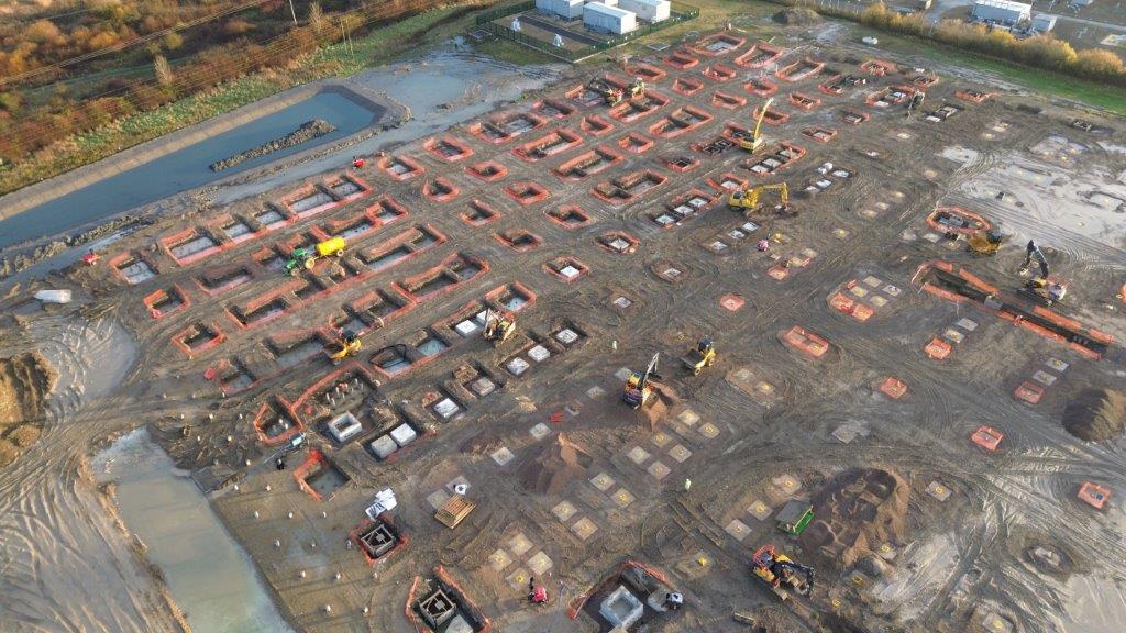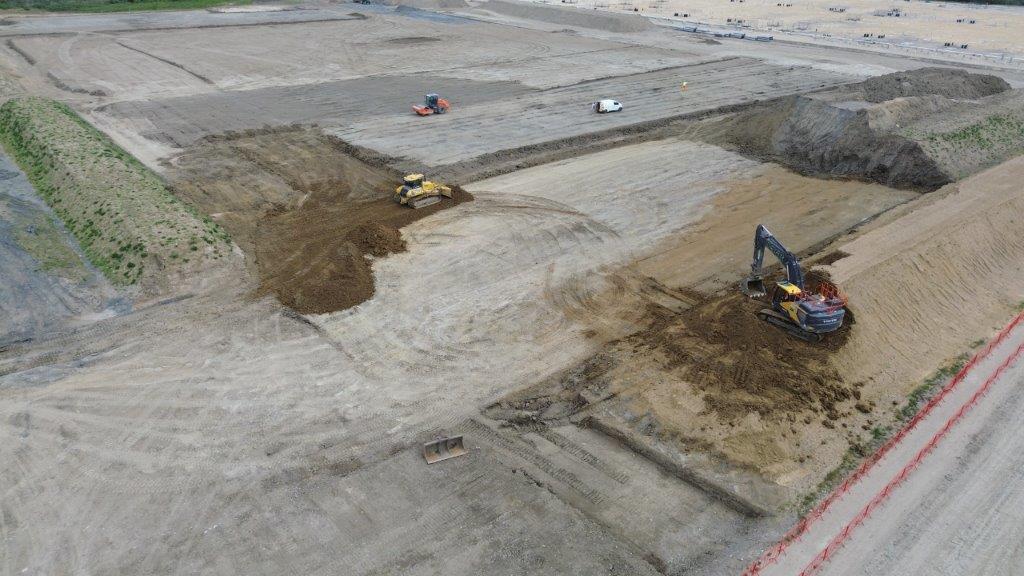 - Excavation and sorting of over a 100,000 cubic metres of soils which was tested to meet 1A/2A specification for re use in the earthworks profiles; the breakout and excavation of 28,000 cubic metres of hardstanding, crushed to meet the 6N specification for the construction of a 55,000m2 piling mat/working platform and the 6F2 specification for use in the construction of the roads.