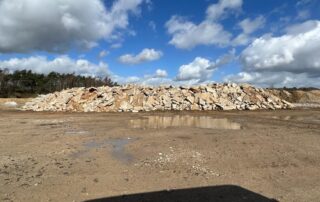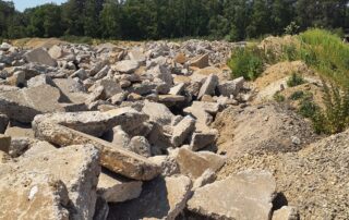 Waste concrete planed out by the main contractors using a surface mining machines is transported to our sites arriving in either large breakout lumps or roughly 0-70 mm. This is loaded into impact/cone crushers (to minus 24mm) then fed into two-way screening plant to produce single-sized aggregate – either 0-10mm or 10-20mm.