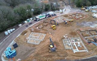 We also carried out plot-specific substructure works such as piling, construction of reinforced concrete ground beams, installation of insulated precast ground floors slabs, external private surface and foul water drainage, all new private services connections and new private roads, driveways and patios to the houses.