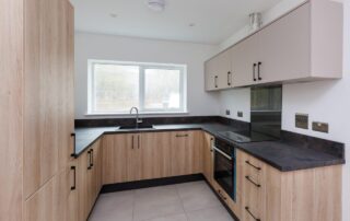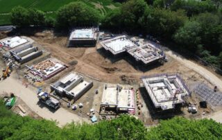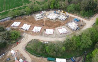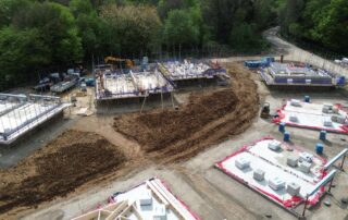 Following the enabling works the new build phase commenced in April 2025. This stage delivered a number of aesthetic and environmental features. The site layout ensures all properties are outward facing with views into the woodlands and the detached houses are fitted with large glass windows to provide views into the surrounding woodland.