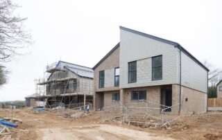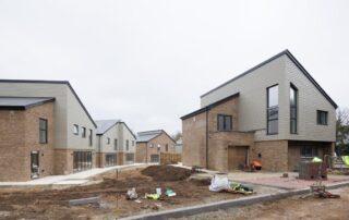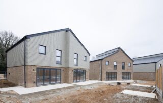 The design required a high energy efficiency (SAP) rating which was achieved by installing state-of-the-art air source heat pumps throughout. A neutral matt green cladding material was used to reflect the surrounding countryside and all properties have natural timber carports to help reflect the natural environment.